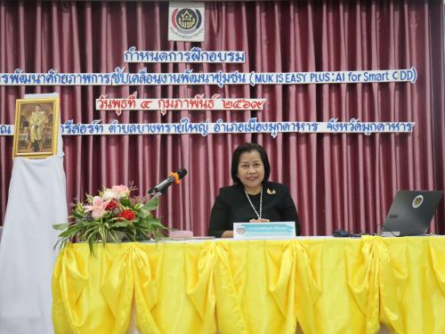 ในการนี้ นางนวลจันทร์ ศรีมงคล ผู้ตรวจราชการกรมการพัฒนาชุมชน ปฏิบัติหน้าที่ผู้อำนวยการศูนย์ศึกษาและพัฒนาชุมชนอุบลราชธานี และนางกาญจนา รัตนเมกุล พัฒนาการจังหวัดมุกดาหาร พร้อมด้วยผู้อำนวยการกลุ่มงานทุกกลุ่ม ร่วมขับเคลื่อนภารกิจตามประเด็นเน้นย้ำ 5+1 ของกรมการพัฒนาชุมชน ด้วยโมเดล MUK IS EASY PLUS ตลอดจนการดำเนินงานตามโครงการ พช.ใสสะอาด ภายในกิจกรรมมีการบรรยายหัวข้อ “AI for Smart CDD พลิกโฉมการทำงานด้วยปัญญาประดิษฐ์” โดย นายสิริวัฒน์ นาโสก โรงเรียนผึ่งแดดวิทยาคาร เพื่อแนะนำเครื่องมือ AI ที่จำเป็นสำหรับงานพัฒนาชุมชน เทคนิคการใช้คำสั่งและการใช้งาน AI เบื้องต้น รวมถึงการนำข้อมูลมาวิเคราะห์และประมวลผลด้วย AI “CDD MINI DATA ฐานข้อมูลเพื่อการตัดสินใจและขับเคลื่อนงานพัฒนาชุมชน” โดย นายศุภชาติ แสนบุญศิริ นักวิชาการพัฒนาชุมชนชำนาญการ สำนักงานพัฒนาชุมชนอำเภอดอนตาล เพื่อเสริมสร้างความรู้ ความเข้าใจ และทักษะด้านการใช้ AI และฐานข้อมูลในการขับเคลื่อนงานพัฒนาชุมชนให้เกิดประสิทธิภาพและผลสัมฤทธิ์อย่างเป็นรูปธรรม